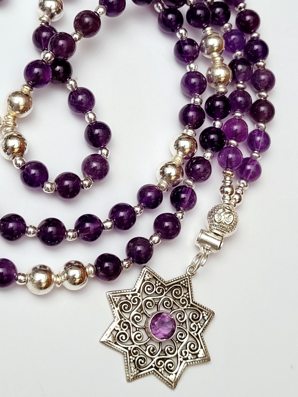 No japamala, a ametista se torna uma grande aliada para práticas meditativas e mantras. Sua energia contribui para: