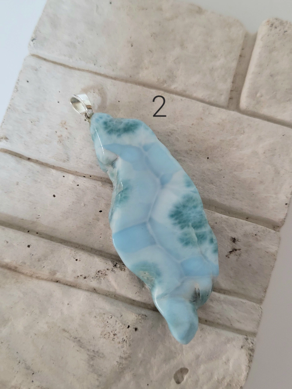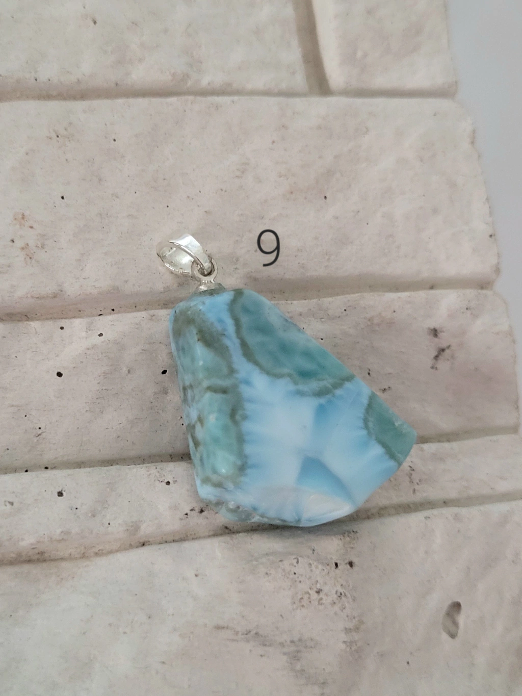 Pingente de Pedra Natural - Larimar com acabamento em prata 925 (não acompanha corrente).